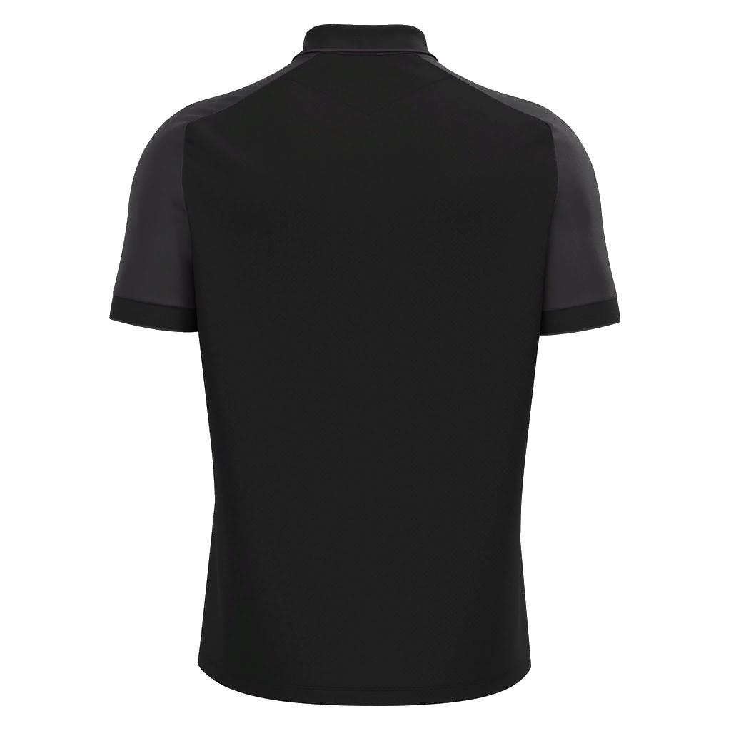 Leisure polo shirt made of polyester Piquet Soft with a Micromesh back for continuous breathability and freshness. Features a knitted polo collar and a geometric embossed design on the front, adding depth and character.